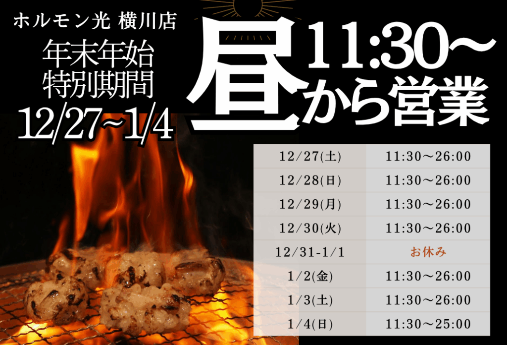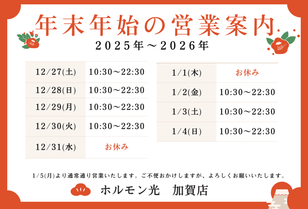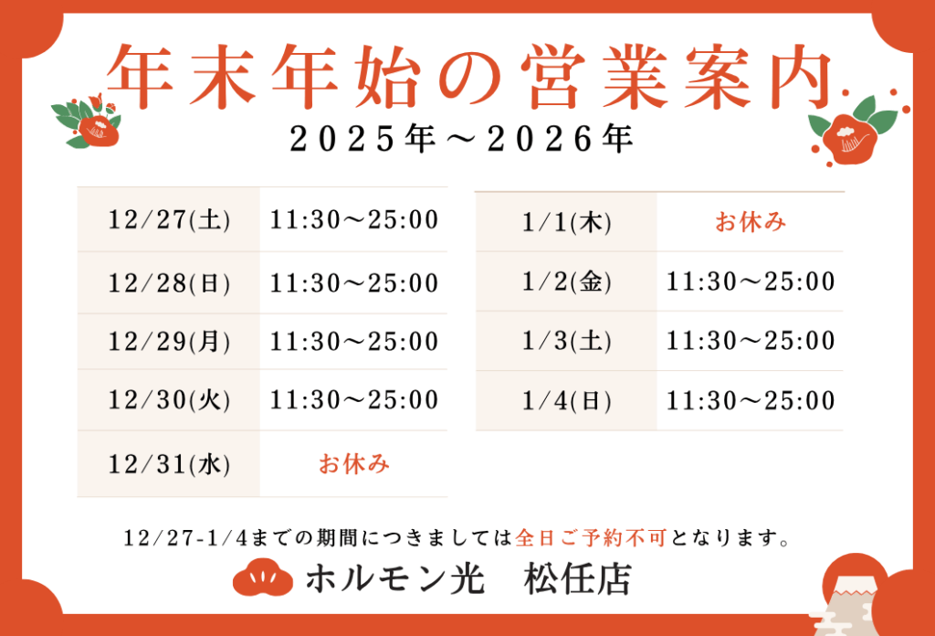 2025-2026年末年始営業時間は下記の通りとさせていただきます。