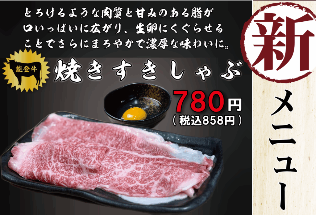 能登牛を"焼きすきしゃぶ"で堪能できます。
