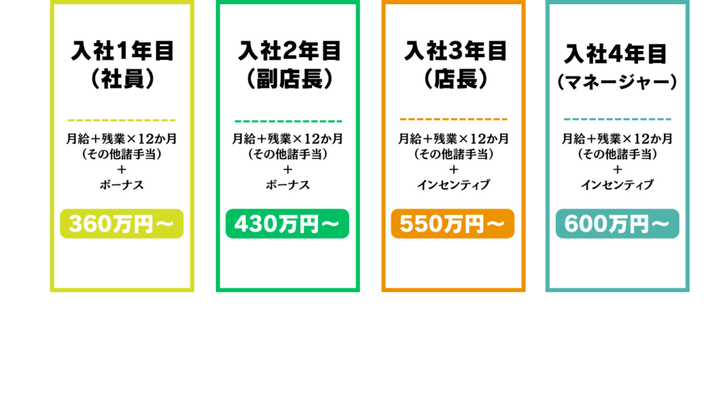 入社4年目(マネージャー):600万~