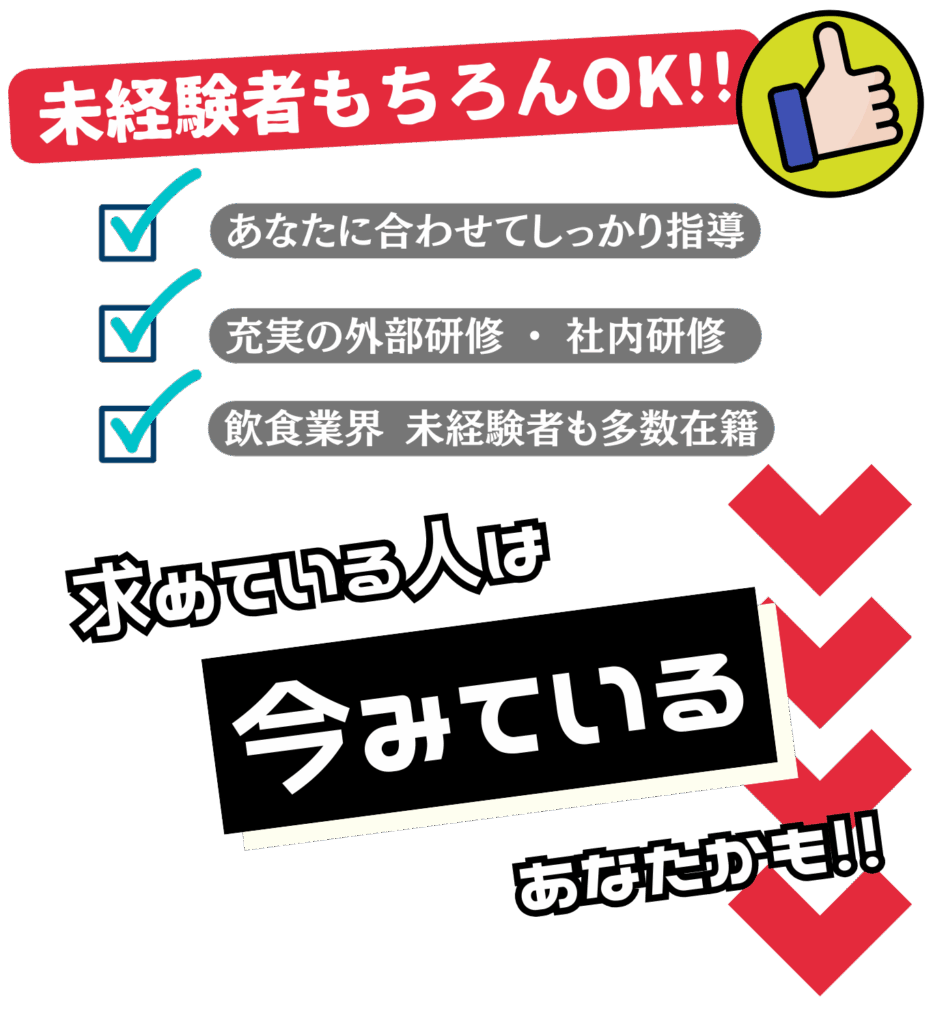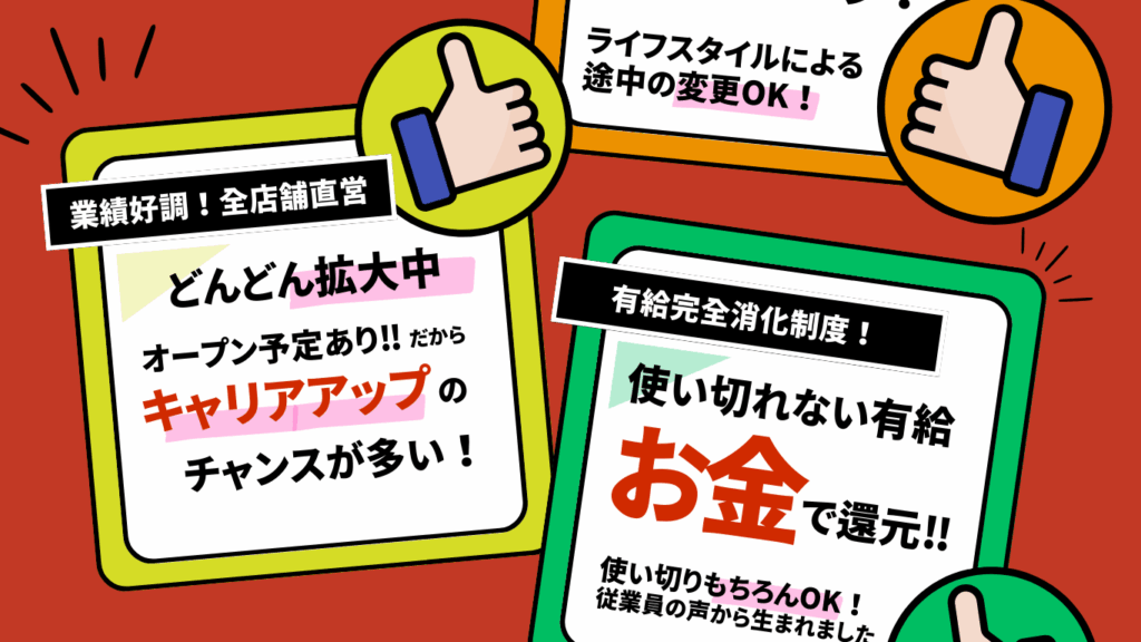 新店舗が続々とオープンしています!業務拡大中につき、ポジションが多数あります。成長や挑戦を望む方には、必ずその努力や意欲に見合ったポジションを用意します。